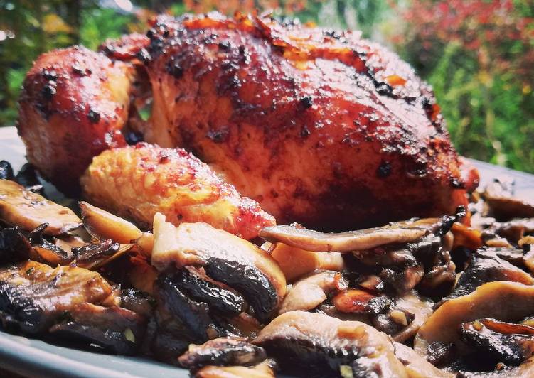 - Pieczarki przesmażyć z cebulą na maśle i podać do kurczaka. Smacznego 🙂.