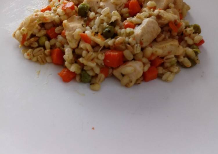 Instructions to make Kaszotto z kurczakiem, marchewką i groszkiem: